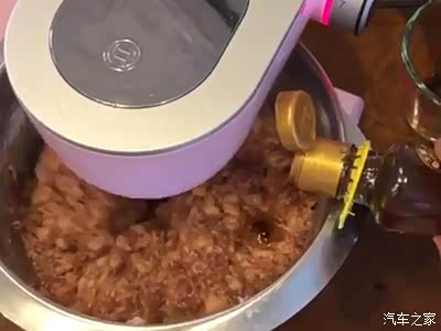 【放水料】过滤掉姜葱花椒渣,将水分次打入肉未。先加少许水,看到肉未发白成团继续加入第二次