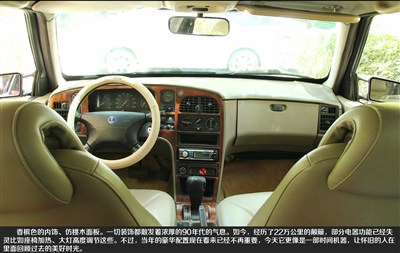 香槟色的内饰、仿桃木面板。一切装饰都散发着浓厚的90年代的气息。如今,经历了22万公里的颠簸,部分电器功能已经失灵比如座椅加热、大灯高度调节这些。不过,当年的豪华配置现在看来已经不再重要,今天它更像是一部时间机器,让怀旧的人在里面回顾过去的美好时光。