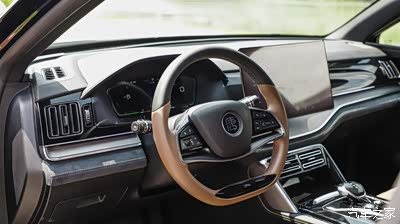 它的内饰是棕黑双拼的颜色,看起来显得稳重大方。