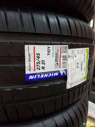 接下来就是轮胎,275 45 21的轮胎款式很多,路虎规格,从800元的佳通到3K元的都有,米其林去年发布最新PS4 SUV,一直被那胎壁所吸引,说实在马牌的轮胎真的是非常不好用,上一台车买了一套MC6,虽然也是最新发布,用了2K公里就折价卖掉了,在用过众多品牌之后,最终选择米其林PS4 SUV,275 45 21规格,而且还是匈牙利产的进口喔!