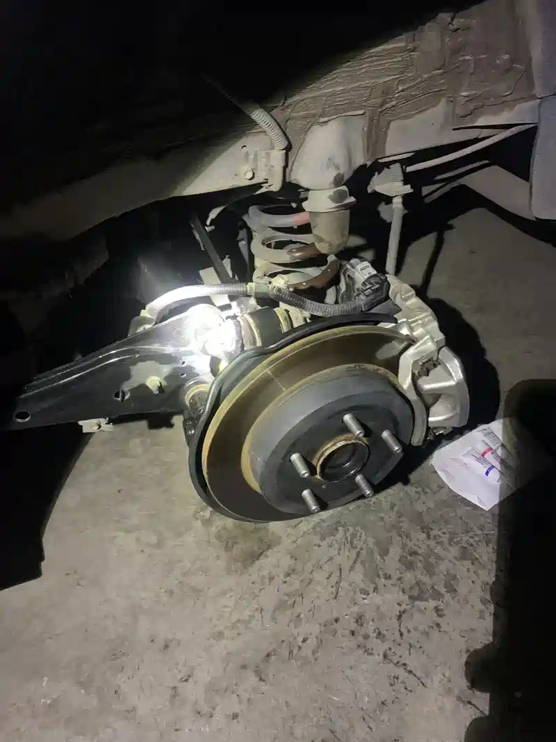 卸掉左前轮,简单清理一下开始拆卸导向销