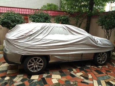 暂时没有专用的车衣,花园的樟树落叶特别多,拿老车的车衣凑合用这先