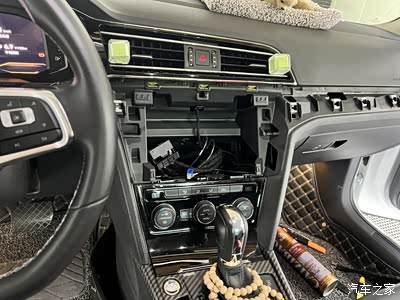 第一步:需要将中控拉丝银面板取下。在用翘板翘的时候要注意饰板卡扣不能翘断,以及不能划伤饰板和主机屏幕。