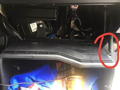 空调滤芯要打开副驾驶位置的储物盒两边的卡扣,先摘下这个阻尼杆,然后用手向中间挤压一下,两边的卡扣就出来了,很简单