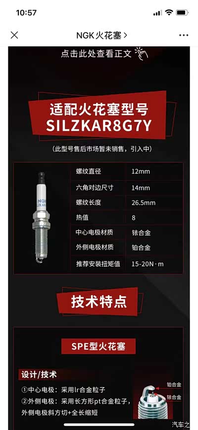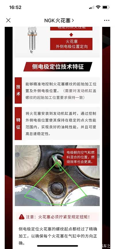 车子开了8万,很关心首次更换换什么火花塞好,看了捷豹和路虎很多论坛,很多推荐电装一个双针款。通过大量查阅资料(过程省略),增压机型用的火花塞和自燃吸气发动机还真不一样,一般间隙小于0.8毫米,极光这款原装塞子,用的不可变性垫圈,在ngk官网上指出,此款(SI和DI打头的火花塞都是进阶高级塞子)已经是进阶高级款了。不可变性垫圈是为了保证电极指向,详细看图。所以结论就是此款原装货是适配PT204地表最强了,没有可替换款,大家还是不用太纠结了,相信厂家,就用原厂款。