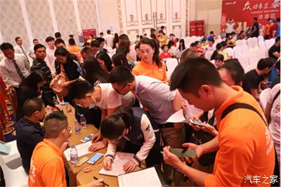 现场的团购仪式正在火热进行中,看来车友们都想早点订到车,都在抢着付钱,下订单,填写个人的信息了。这么多的人,挤得我仿佛以为自己置身在早高峰的公车山。