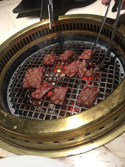 铁板烧的牛肉滋滋作响,饿了一天的我和小伙伴已经馋哭了。
