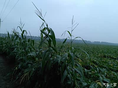 下面是玉米倒伏现场,这一大片玉米全部被台风吹倒