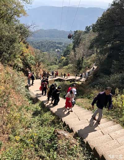俗话说 上山容易下山难,索道维修这种事也让我们遇上 硬着头皮的爬,爬到三分之一处我已经气喘吁吁加上耳鸣 耳疼再想想爬上去还要下来 想放弃的心有N次 还好朱哥一直在旁边鼓励我,让我看到坐缆车从来没看到过的美景,一路上偶遇各种小动物遗憾的是这次还特意买了面包给哥吃结果一只也没看到,用时两个小时爬到山顶 我真的做到了 那种喜悦感估计只有爬过的人才能体会到!跟朱大哥的第三年鸡足山下山仅用时52分钟。