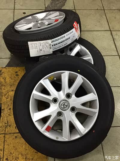 无意中看到某虎买三送一活动有款175 70R14的胎,查了下尺寸,和原配的误差不大,价格也便宜,和下来一条胎才二百出头,果断下单,两天到货,晚上下班赶紧去装,但发现视觉效果有点差,貌似太窄了。