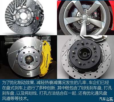 在制动盘上进行打孔、划线、以及由实心盘变为空心盘的改变都需经过大量工业设计、计算以及实验。在没有上述技术支持情况下,车主自行在刹车盘上进行打孔、划线等作业以此提升制动盘散热能力的初衷往往会带来制动盘结构受损、强度减弱等得不偿失的情况。