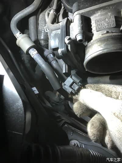 这一步是重中之重,清之前一定要拔掉节气门插头,掉掉之后就可以把清洗剂喷到纸巾上用手推开节气门随便洗了。