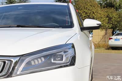 先说一下帝豪的外观吧,在很多细节处理的非常具有自己的风格,水滴涟漪的前脸设计,辨识度非常高,鹰眼大灯,回纹设计的扶手,音箱,让吉利帝豪更加具有自己的风格,更加具有中国元素的风格。