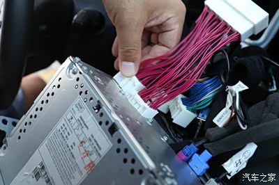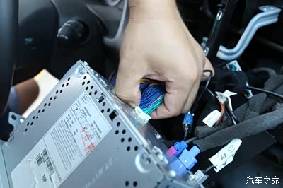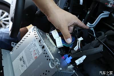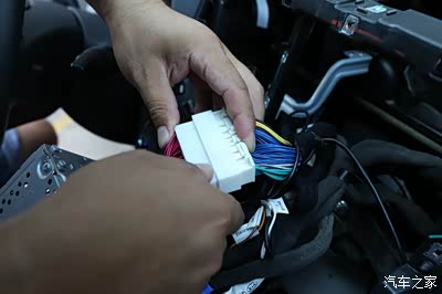 对啦,这里就是了,帮转换接头的一头插入原车的卡槽里面,然后将原车的线束插到配的那个线束上面就可以了