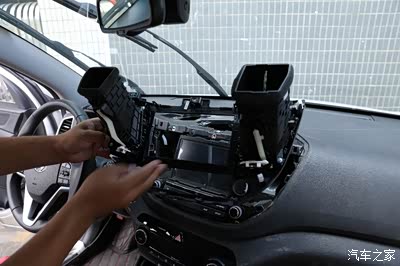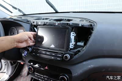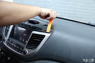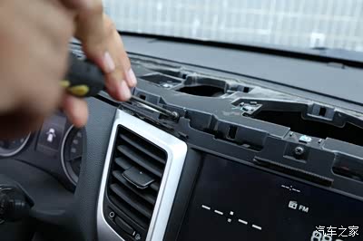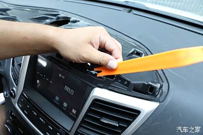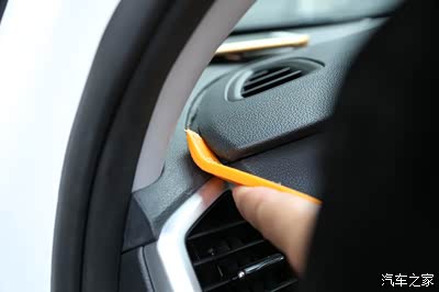 这里取的时候一定要注意下,我们首先从右边的风口开始翘起,因为里面都是卡扣的 所以翘的时候听到咔的一声 就说明已经撬开了