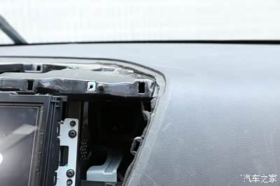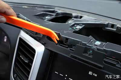 撬开之后呢,拿住仪表盖板往后拉,因为里面都是卡扣的,卡扣撬下来之后,有一个形似轨道似得,直接往后拉就可以取下来了