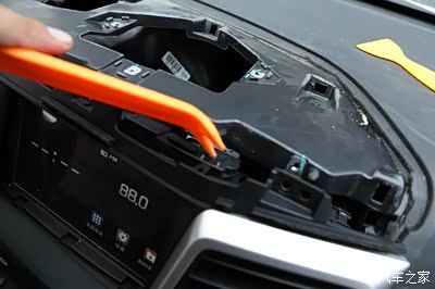 这里首先要走边缘的位置撬开仪表工作台上面的一个盖板,里面都是卡扣固定的,很方便的
