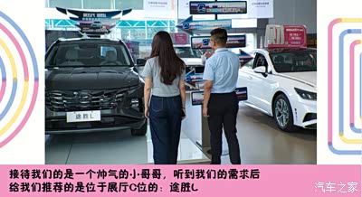 在这里要说个小插曲哦,第五代途胜L虽然位于展厅的C位,但是受制于展厅的空间和展车排列,所以很多照片根本不好拍,我们就和4S店商量可不可以开到展厅附近去拍。