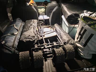往里放东西,露营车,帐篷、吊床,听说听说听说..............................,可以露营,主播说可以用露营车,台阶不多。但是但是但是............................,真是心酸泪啊,这露营车在不平路面上,真不好走啊,真损车啊