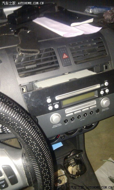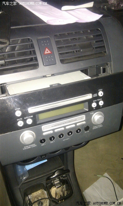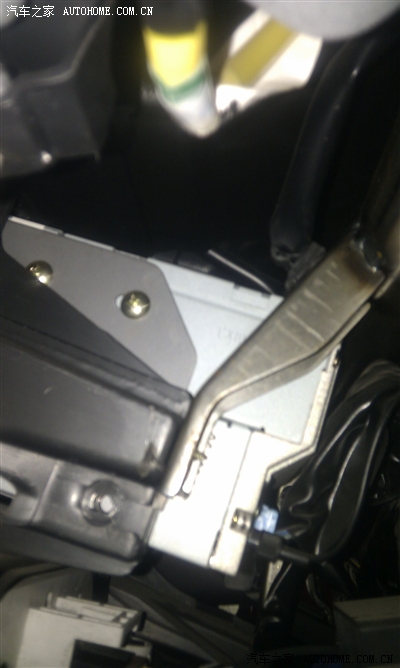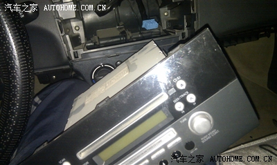 这时候就可以取下CD机了,但是有个一敲门,CD机有好几个卡子,很难就这样拔下来,要用个螺丝刀伸到CD机的后面借助后面的仪表板的大水管给撬一下才可以,往外硬拔是没戏的