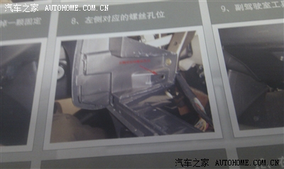 看到左下方有个大大的螺丝孔了么,那就是把固定CD机的两个螺丝其中一个,左边就是在方向盘下面把手伸进去摸到一点一点的拧下来。