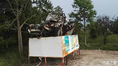 服务区有个菱悦的残骸,警示人们安全行车。我在想,这个车的人死了吗?长途自驾,安全第一,一定不要疲劳驾驶。