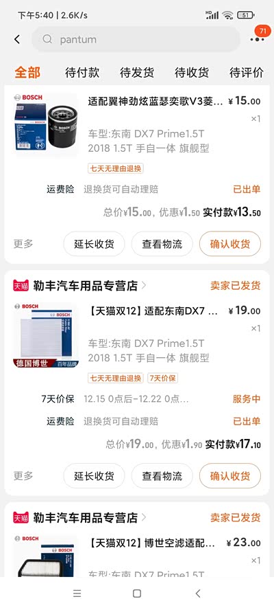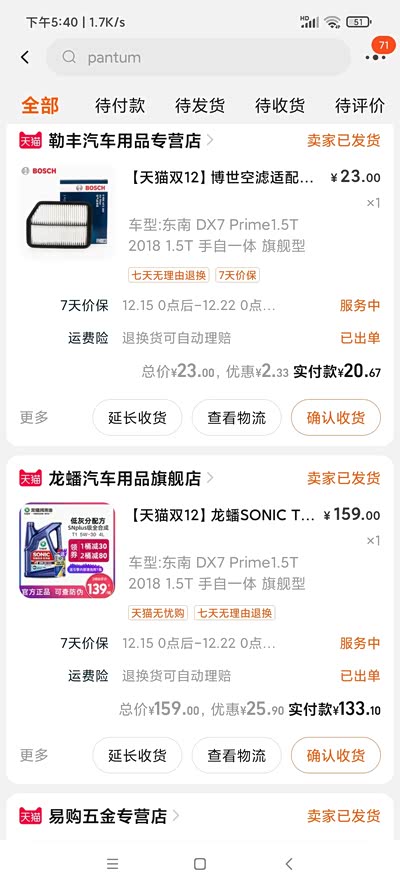 自己保养最大的好处就是便宜实惠,用的配件真材实料价格便宜,几乎都是国际十大品牌之一。此次保养清单机油龙蟠的T1 PLUS系列的,5W-30,某宝活动时买的,133元一桶送一瓶发动机内部清洗剂。