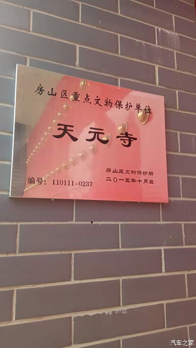 回家脑补了一下,天元寺始建年代无据可考,寺庙内现存有辽代经幢和石刻香炉各一件,民国时重修留有一碑,可证古庙的悠久历史。山门额楣上刻楷书:“天元寺”三字。寺院外红墙翠竹,显得幽静素雅。主殿两侧有二层钟鼓楼,歇山清水脊。