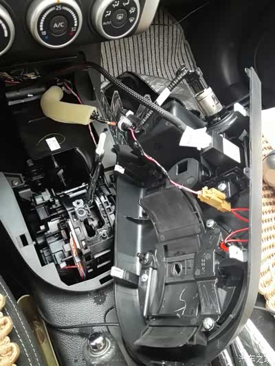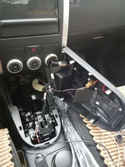 按反序盖好挡位盖板,装好挡位把手。这是通电后的胎压监测器显示屏,下面是替换下来的原装饰件。
