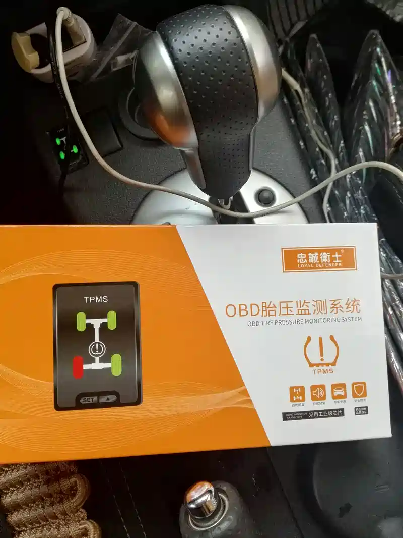 忠诚卫士品牌的OBD胎压监测器,据说是通过原车数据总线的插头接收ABS数据,来识别轮子转圈数以此来判断胎压对于漏气、爆胎、扎针、低气压的情况会进行自动的报警提示的。半小时前加装完,现上图分享
