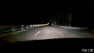深夜无路灯的时候,虽然拍虚了但是看护栏反光条就知道能照很远,海拉5的远光就是高射炮