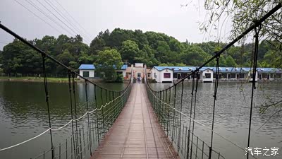 水库中拉索吊桥,走上桥摇摇晃晃,别有一番风味。