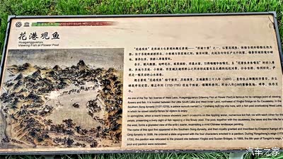 “花港观鱼”的“鱼”的下方,是乾隆皇帝故意所写:少了一个点,寓意水、活!