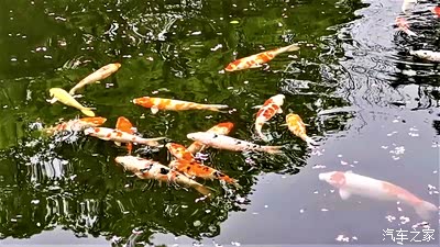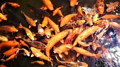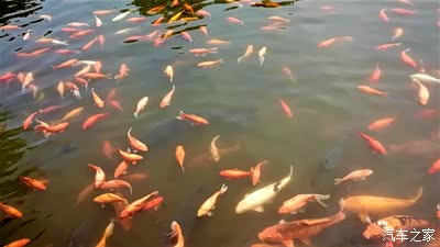 欢畅抢食的红鲤,也叫火鲤,鲤科,分布广泛,可在各类水域生活。是养殖的主要对象,全年均有生产,以春秋两季产量较高。体延长,侧扁,背部隆起。口下位,有吻须和颌须各1对。鳃耙短。腹部圆。鳞片大而圆。侧线明显,微弯。尾鳍深叉形。体色橙红。
