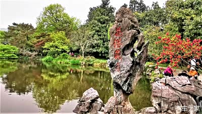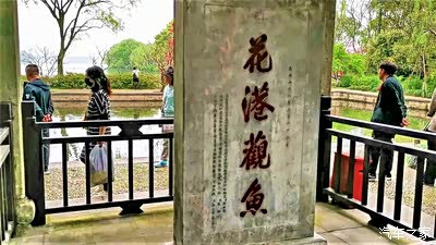 公园东门右边,就是著名的“西湖十景”石碑“花港观鱼”。这是乾隆皇帝下江南时所题,其中的“鱼”字,繁体写法是四点,代表火,乾隆改为三点,代表水,寓意百姓生活风调雨顺,江山稳固太平。还有种说法:“花港观鱼”四字为清康熙皇帝手迹。康熙一生崇信佛教,向有“佛爷”、“善人”之称。他孙子乾隆爷也崇尚“好生之德”。然而,在汉字里,三点为水,四点为火。繁体“鱼”字底部的四点,本为火字,鱼遇水而生,遇火必死。皇帝不忍见鱼死,便将碑文中“鱼”字底部的四点改写成了三点,意在让鱼永远欢快地生活在水里,以示皇恩浩荡,泽被万物之意。这也给后人留下了一段有趣的典故。