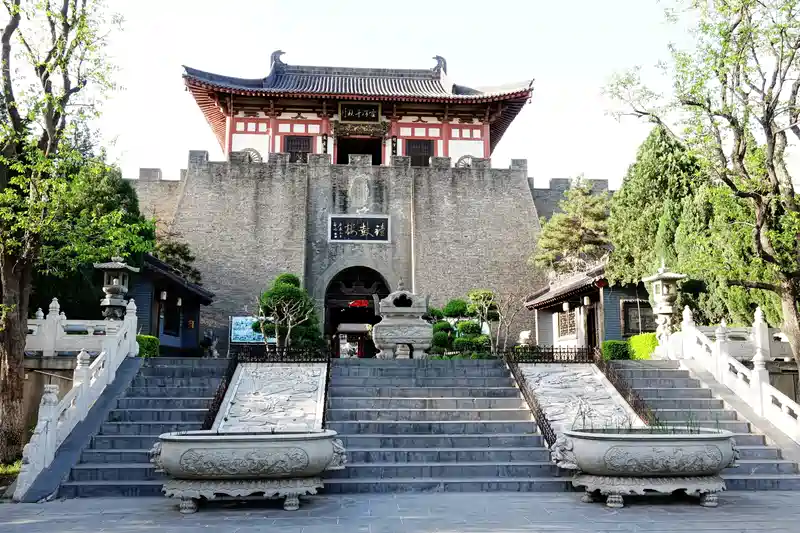 从羊角山下来后就来到了位于原陕州古城北大街上的钟鼓楼,走近了才知道这是甘棠苑景区的大门。我们到这里时还差10分钟就到景区关门的时间了,看这么贵的门票(60元/人),想着明天还值不值得再来一趟。就到售票处跟工作人员打听,问一下景区里面有什么值得看的,谁知工作人员特别热情,不停的给我们介绍,特别是最后说园内的甘棠树正值盛花期打动了我,因为自从知道颐和园里有几株甘棠树后一直没有机会见到它们开花的样子,几乎每到甘棠开花的季节我们都在外地。于是随口说了句那就明天再来吧。没想到工作人员跟我们说现在就可以购票入园,而且没有时间限制,看完为止。购票后,工作人员跟我们一起进去关闭景区大门,并嘱咐我们参观完后从小门出景区就行了。