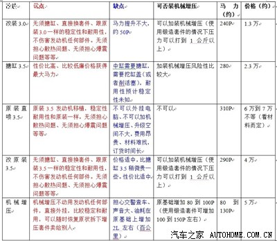 注意:下面方案中其中有搪缸3.5的方案并不是说不稳定和不耐用,只是未知数,请各位车主不用惊慌,只是这个方案不太适合加机械增压而已!性价比最高还是搪缸3.5的方案