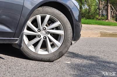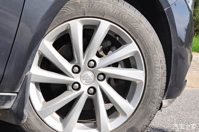 16寸的铝合金轮毂样式很帅,原车配的是固特异御乘,不管是静音舒适还是干湿抓地力表现都相当不错,最主要的是够耐用,这都六年多了,要不是怕老化的差不多了还能继续开,胎纹还挺深的。