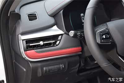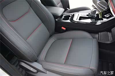 红白双线条点缀着的车内,大面积包裹的中控,皮座椅,真皮方向盘等等都显得内饰做工很用心