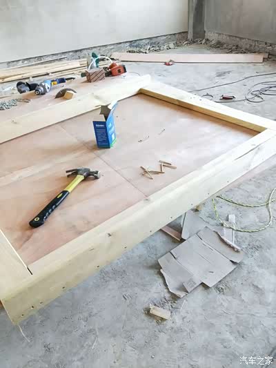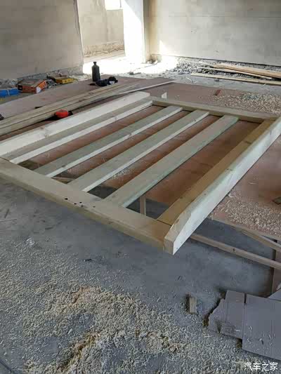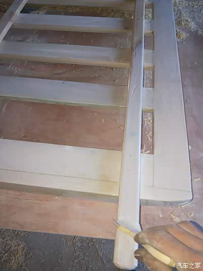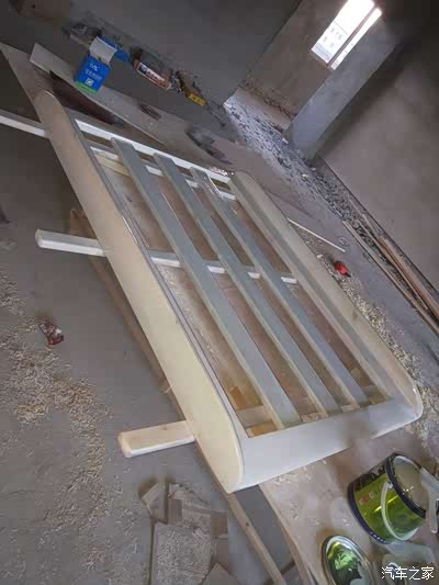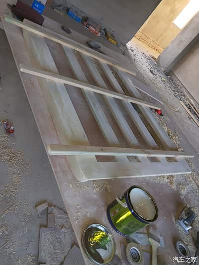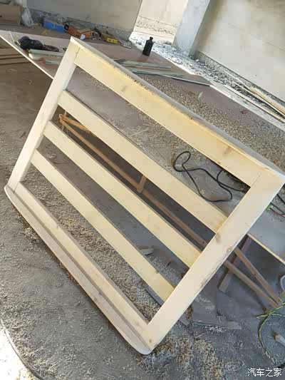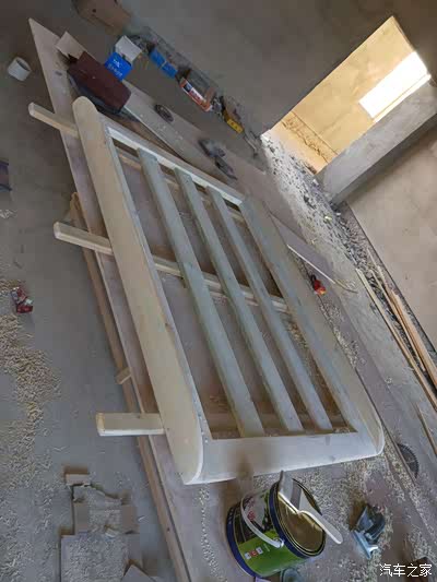 由于图片太多我就不一一上传了!第二天一早我就赶回安顺普定工地上了,中午十分吃了饭直接开搞!第一张图,防腐木已经被我做成了一个框架!没错这个就是行李架的外框!很多车友问我,木头的行李架会不会不牢固,