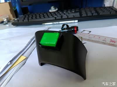 終於看到一款儀表開關比較合適,有圓形有方形,直徑15mm的圓形挺合適的,裝上后感覺不協調,於是換上15X20mm的方形開關,看看感覺還可以,於是就用方形的固定下來,加工過程看圖片:
