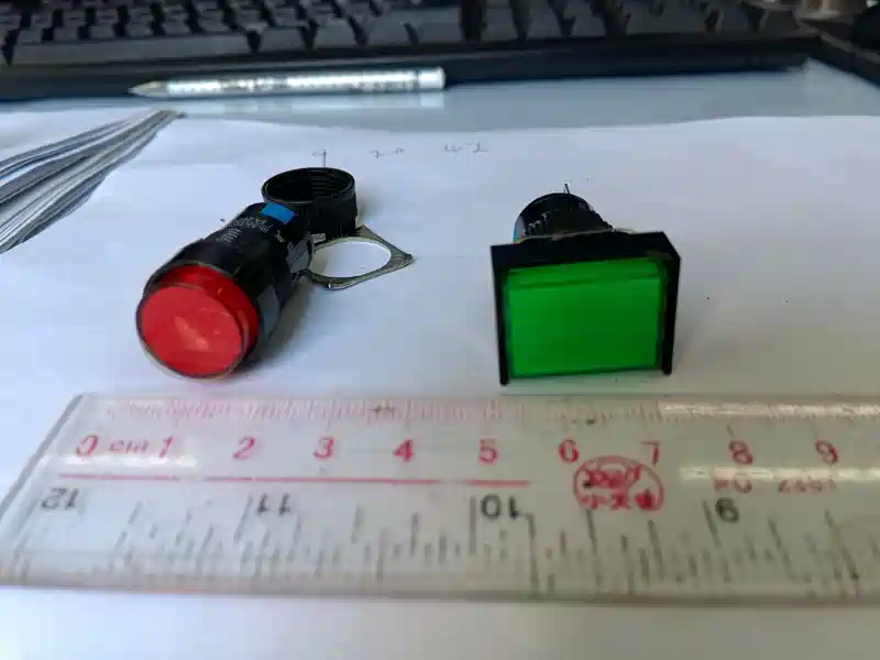 電性能是250V/5A,絕對的可以做12V低壓開關用;為了更多選擇,一次找儀器部要了好几款,有一種帶自鎖的是用不上了,這裡只能用非自鎖開關,有個很好的特點是手感非常好,任意角度按壓都可以輕鬆按下,約100克力度吧!