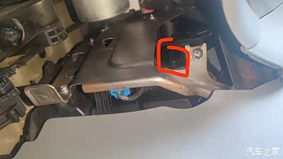 主驾驶下方如图,有个t20螺丝,连接吹脚的风道。这个铁架子里面也有个螺丝t25 全部卸下来。