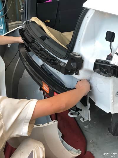 出现了个小插曲,新晶锐的后尾灯很难拆开,师傅废了好大力气