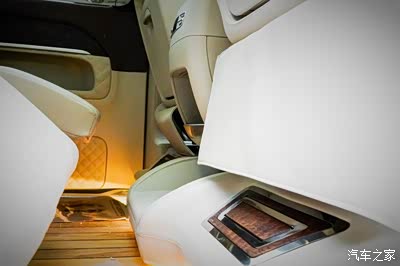 中排座椅前方有皮革包裹的脚托,这样躺下后脚不会空着充血