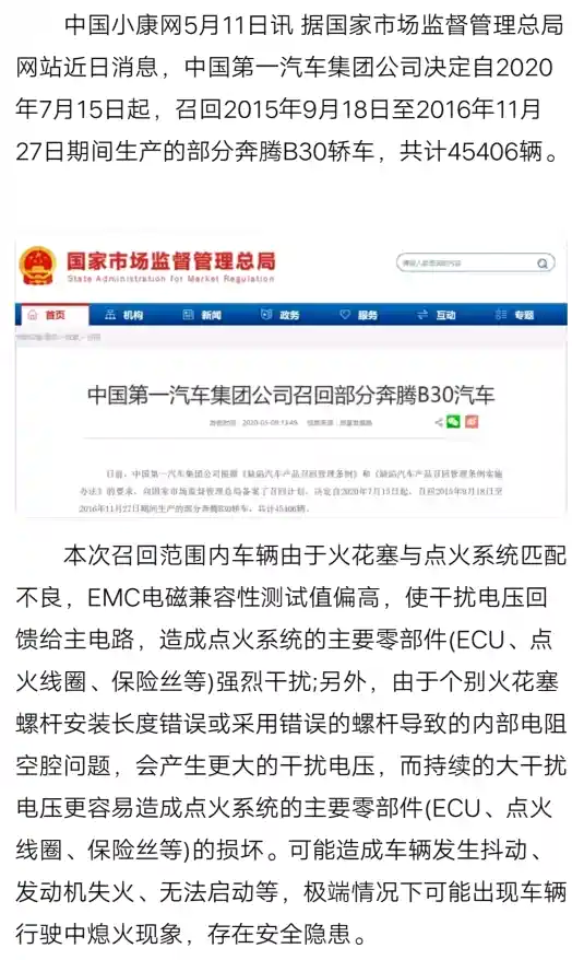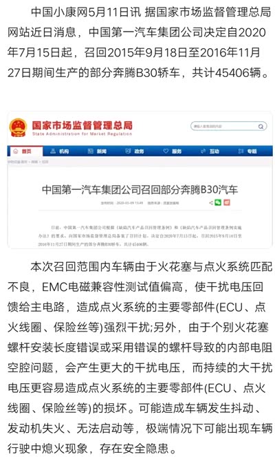 16年的车跑了五万多公里,没想到发动机电脑板缺缸的事我也会遇到,以前厂家免费换的NGK的火花塞,过年的时候想提升一下,换的博世的火花塞。结果今年没跑两个月,跑着跑着直接熄火,滑行靠边,缺缸3个,拖回去检查,发动机电脑烧了,找人维修的四百元。大概是点火模块被电流打穿了。我记得18年还是多久厂家大批量免费换过一次火花塞,但是没给说明情况,最近才去搜才知道这个系列的电脑板有缺陷,奔腾B30也是这个发动机和电脑板。建议大家换还是NGK的,原厂火花塞型号是NGK的96166。