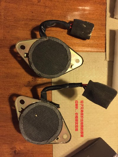 回正题,咱们继续装喇叭,两个原装位小纸片取下来,跟我从论坛一XD转过来的两个喇叭一比,完了,螺丝孔不对位。
