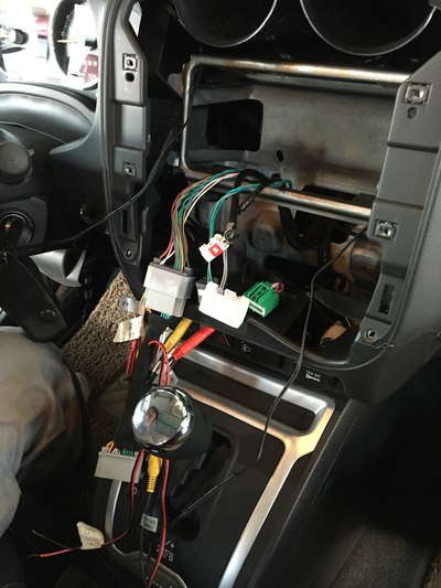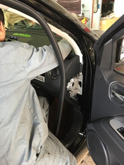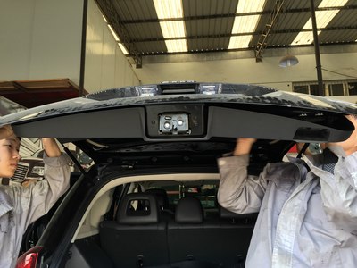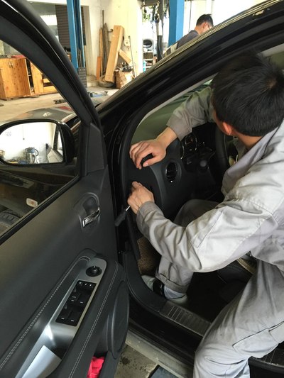 前面拆仪表台,后面装倒车摄像头的工序同步开始,小指的后内饰板全卡口,特别紧,两个师傅忙活了好一阵子。
