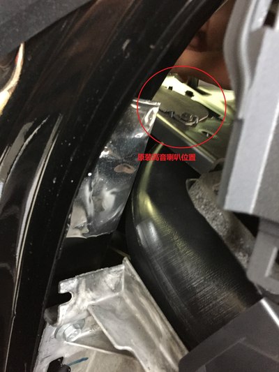看图说话,一边固定原螺丝孔,另外一边刚好买来的喇叭上侧边有个定位槽,师傅用钳子去掉定位金属卡条,螺丝比上去刚好装到高音原装位。