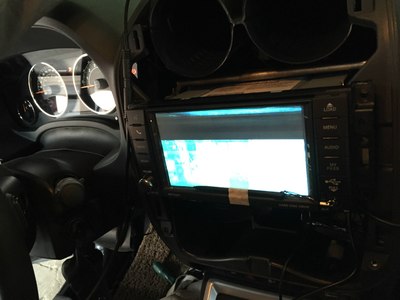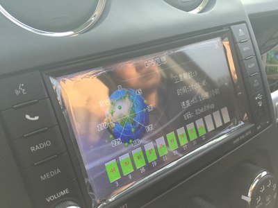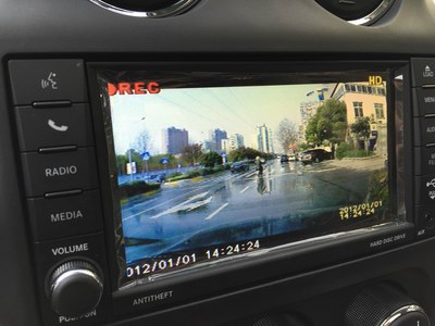 长按左上语音键一次,行车记录仪摄像头显示出来了,不过怎么是花屏阿,动动脑子,原来行车记录仪默认输出是PAL格式,主机只支持NTSC格式,别急,买记录仪以前已经问清楚了,两种格式都支持,只是默认是PAL,对着店家的说明书在记录仪上操作几步,OK了。(激动了,忘拍了,后面也有补图哈哈)
